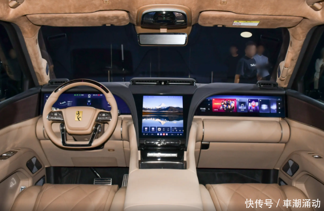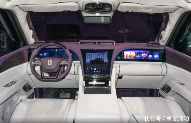 来到车内之后,仰望U8L的内饰提供了黑棕双拼和紫灰双拼的两种色调搭配,其中黑棕配色的仰望U8L针对方向盘上的Logo也采用了金色元素进行点缀。而且值得一提的是,仰望U8L的前排布局虽然跟仰望U8大差不差,但是在一些细节部分还是做了优化,例如中控屏下方的物理按键进行了位置转换,即将一键启动按键跟双闪警示按键交换了一下“领地”。除此之外,仰望U8L的两块手机无线充电槽加入了风冷散热的装置,进一步提升了实用性。